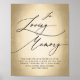 Panneau de mariage élégant avec écriture calligraphique noire sur faux papier d'or 'En souvenir aimant, Mémorial pour les proches qui nous ont quittés'.