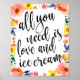 Un panneau de mariage élégant et avant-gardiste, avec le texte "Tout ce dont vous avez besoin, c'est d'amour et de glace" dans une police de caractères script extrovertie, la texture de brosse ajoute une sensation spontanée et ludique. La couleur de fond peut être personnalisée en fonction de vos besoins et préférences, veuillez me contacter si vous avez une demande spéciale.