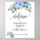 Affiche Panneau de mariage floral bleu pour fête de mariag