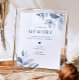 Ce panneau de mariage floral bleu poussiéreux en souvenir est parfait pour un mariage romantique en plein air ou une célébration chic et moderne.