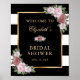Panneau de bienvenue élégant pour une fête de mariage floral rayé noir et blanc. Articles assortis disponibles.