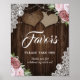 Panneau de mariage personnalisé rose pâle rustique avec des fleurs rose pâle et deux coeurs de toile de jute sur un fond de bois rustique et de dentelle. Des articles assortis sont disponibles pour compléter ce panneau de faveur.