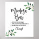 Le panneau de signalisation MIMOSA BAR présente un magnifique design de calligraphie de verdure pour votre mariage, votre douche ou votre fête.