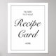 "Veuillez mettre votre carte de recette ici" panneau de mariage. Design noir et blanc minimaliste moderne élégant.