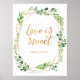 Belle pancarte florale verdure 'L'amour est doux' en feuille d'or faux et aquarelles.