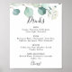 Affiche Panneau de menu de boissons de mariage au eucalypt