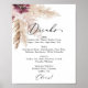 Ce panneau de menu de boissons de mariage en herbe de Pampas bohème est parfait pour un mariage d'été. Le design à l'aquarelle florale présente des fleurs de couleur bordeaux bohème et rose blush avec des brins d'herbe de Pampas neutre et des feuilles de palmier séchées dorées.