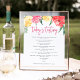 Un charmant panneau de menu de dégustation de vin floral affiche vos sélections de vins ornées de fleurs aquarelles vibrantes en rose, rouge et jaune. Conçu pour correspondre à notre collection d'invitations Jardin de roses.