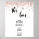 Les pièces de cette collection présentent des phrases importantes rendues dans une police distinctive et élégante accentuée de cœurs, ainsi qu'un graphique représentant des confettis de couleur cuivre. Dans ce panneau de menu, le texte manuscrit indique «le bar». Utilisez les champs de modèle pour ajouter vos détails et faire de ce panneau de réception le vôtre. // 80 //