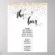 Les pièces de cette collection présentent des phrases importantes rendues dans une police distinctive et élégante accentuée de cœurs, ainsi que de faux confettis dorés. Dans ce panneau de menu, le texte manuscrit est « the bar ». Utilisez les champs du modèle pour ajouter vos informations et personnaliser ce panneau de réception. // 80 //