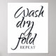 Affiche Panneau de salle de bain Laver Sécher Plier Répéte