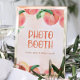 Parmi les feuilles vertes peintes à l'aquarelle, de petites pêches sucrées sont décorées de lettres adorables et mignonnes.