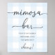 Ce panneau de signalisation du bar mimosa pour la douche de bébé garçon à carreaux bleus est parfait pour une simple douche de bébé. Le design moderne présente un design intemporel à carreaux bleus et des polices modernes.