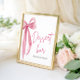 Le panneau de signalisation pour bar à desserts "Watercolor Elegant Blush Pink Bow: She's Tying the Knot" (Aquarelle Élégante Ruban Rose Pâle: Elle Noue le Nœud) ajoute une touche de sophistication et de douceur à toute station de desserts de mariage ou de shower de mariée. Avec son design délicat à l'aquarelle et son motif de ruban rose pâle, ce panneau donne le ton parfait pour que les invités se régalent de friandises délicieuses. Qu'il soit exposé sur un chevalet ou encadré sur la table du bar à desserts, il sert de point de mire charmant tout en guidant les invités pour satisfaire leurs envies sucrées. Ce panneau améliore non seulement l'ambiance de l'événement, mais garantit également que les invités peuvent facilement trouver et apprécier un assortiment délicieux de desserts.