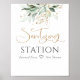 Feuilles de verdure dorées élégantes panneau de station de désinfection de mariage