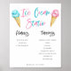 Panneau de menu de station de glace amusant pour votre fête de révélation du sexe avec une illustration aquarelle de glaces roses et bleues sur des cônes gaufres. Vous pouvez lister vos propres saveurs et garnitures.