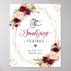 Affiche de la station d'assainissement de cadre géométrique en or floral rouge bordeaux. (1) La taille par défaut est de 8 x 10 pouces, vous pouvez la changer en une taille plus grande. (2) Pour plus de personnalisation, cliquez sur le lien "customiser plus loin" et utilisez notre outil de conception pour modifier ce modèle. (3) Si vous avez besoin d'aide ou d'articles correspondants, veuillez me contacter.