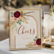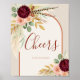 Célébrez avec style avec ce panneau de table "Cheers" de la collection de mariage "Fall in Love Bridal Shower" de Porch and Gable Design. Avec un bouquet peint à la main de chrysanthèmes bordeaux foncé, de roses rose tendre, de feuilles d'automne dorées, d'herbe de pampa séchée et aérée, de feuillage d'eucalyptus sauge et de plumes de faisan rustiques inspirées de l'Ouest, encadré par une arche orange rouille terracotta sur un fond beige argileux neutre, ce panneau dégage un charme bohème chic moderne. Le texte indique "Cheers" avec un espace entièrement personnalisable pour un message personnel, des noms ou une date. Parfaitement placé près du bar ou de la station de toast au champagne, il se coordonne parfaitement avec les invitations, la signalisation, la vaisselle, les é