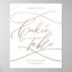 Ce panneau de table pour biscuits à calligraphie dorée romantique est parfait pour un mariage simple ou une douche de mariée. Le design classique moderne présente des volutes fantaisistes et des fioritures fantaisistes avec une typographie dorée champagne fausse élégante et magnifique, écrite à la main.