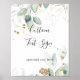 Ce panneau de texte personnalisé en calligraphie eucalyptus or est parfait pour un mariage rustique ou une fête prénuptiale. Ce design artistique présente un feuillage doré et vert dessiné à la main à l'aquarelle, inspirant la beauté naturelle.