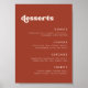 Panneau de menu mariage Dessert Bar. Un thème rétro chic : adoptez ce design typographique vintage et élégant pour votre papeterie Mariage, avec un thème couleur terre cuite. Facile à mélanger et à assortir avec notre papeterie similaire disponible en rose pêche, rouille orange & sucre brun. Couleurs et arrière - plans de texte entièrement personnalisables.