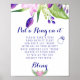 Panneau élégant et stylé de jeu de l'anneau pour la douche de mariée avec un grand bouquet de fleurs roses saumon, prune, marine et violettes lilas avec des feuilles vert sauge et un script chic.