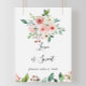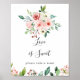 Ce panneau élégant et délicat d'amour floral d'automne 'l'amour est doux' est parfait pour un mariage moderne ou une fête prénuptiale. Le design présente des roses illustrées rose, blush et blanches, des pivoines avec un feuillage vert regroupées en bouquets, accentuant les belles couleurs de l'automne.