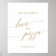 Ce panneau élégant et plat en calligraphie dorée love et pizza est parfait pour un mariage simple ou une baby shower. Le design neutre présente un panneau minimaliste orné d'une typographie jaune doré romantique et fantaisiste.