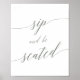 Ce panneau élégant vert sauge 'sip and be seated' est parfait pour un mariage simple. Le design neutre présente une affiche minimaliste décorée d'une typographie romantique et fantaisiste.