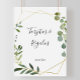 Ce panneau espagnol tropical vert tarjetas et regalos est parfait pour un mariage moderne ou une fête de mariage. Le design présente de belles feuilles vertes peintes à la main, ornant un cadre géométrique doré.