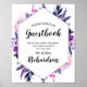 Panneau Fleur Florale Enchantée Violet et Argent Fleurs Feuilles Tiges et Vignes Aquarelle Géométrique Hexagone Cadre Signez notre livre d'or avec Texte ou Citation personnalisé