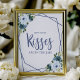 Panneau floral aquarelle bleu poussiéreux Combien de baisers