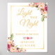 Affiche Panneau Floral Gold Frame Light the Night Mariage