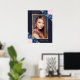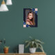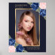 Élégant panneau de bienvenue de célébration de vie/funérailles florales bleues avec photo, avec des roses bleues et roses et des fleurs de baby's breath ornant une photo à l'intérieur d'un cadre doré. Articles assortis disponibles.