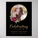 Élégant panneau de bienvenue photo funéraire floral noir, bourgogne et or avec un cadre photo orné de roses rouges bourgogne.