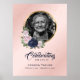 Élégant panneau de bienvenue funéraire personnalisé avec des fleurs roses et bleues et un cadre photo doré orné de fleurs roses et bleues. Pour des demandes personnalisées, veuillez nous envoyer un message via le chat Zazzle.