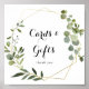 Ce panneau géométrique or tropical cartes et cadeaux est parfait pour un simple mariage ou une fête prénuptiale. Le design présente de belles feuilles vertes peintes à la main, ornant un cadre géométrique or.