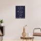 Poster d'impression avec ancre blanche et texte blanc personnalisable - vous pouvez ajouter votre texte, le nom de la mariée et du mariée et la date du mariage, imprimé sur arrière - plan bleu marine avec motif d'ancre. Les dimensions de l'affiche sont de 18 pouces par 24 pouces (vertical).