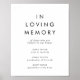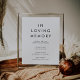 Ce panneau mémorial en mémoire avec une typographie chic est parfait pour un mariage moderne. Le design simple présente une typographie classique minimaliste noire et blanche avec une ambiance rustique bohème. Personnalisable dans n'importe quelle couleur. Gardez le design minimal et élégant, tel quel, ou personnalisez-le en ajoutant vos propres graphiques et illustrations.