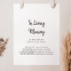 Ce panneau moderne en mémoire de toi est parfait pour un mariage rustique ou une fête prénuptiale. Le design simple et élégant présente une typographie classique et fantaisiste en noir et blanc.