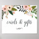 Conçu pour s'harmoniser à notre collection de shower de mariage et de bébé Peach Meadow, ce panneau floral élégant indique aux invités où déposer leurs cartes et cadeaux. Personnalisez avec une ligne de texte personnalisé en lettrage calligraphié (représenté avec "Cartes & Cadeaux"), encadré de fleurs de pêche et de feuillage botanique vert.