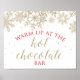 Réchauffez-vous au Hot Chocolate Bar Winter Onederland Snowflake Sign avec des flocons de neige en parties scintillant or et du texte rouge.