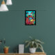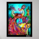 Affiche PAONS AMOUREUX, Rouge Turquoise Bleu Jaune