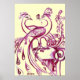 Affiche PAONS EN AMOUR, Rouge et Crème