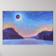 Ce tableau de Total Solar Eclipse représente l'éclipse 2024 au lac Willougby dans le Vermont Westmore. Il est basé sur une peinture à l'huile originale de Matthew Gauvin, artiste vermont, de Edge of Nature Studio. Les bleus et les gris cool se mélangent parfaitement aux couleurs crimson et orange de l'horizon avec un style impressionniste de brosse et de couleur cassée. La teinte rougeâtre des montagnes donne l'impression que les montagnes brillent alors que la lune éclipse le soleil.