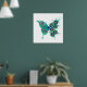 Papillon artistique, fictif, vert, détaillé avec plumes de paon vert, beau, vert sur arrière - plan blanc.