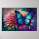Affiche Papillon bleu et Dahlia