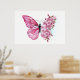 Agencement floral de papillon rose avec fleurs de cerisier japonais roses sur fond blanc.
