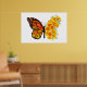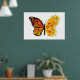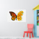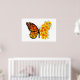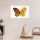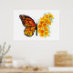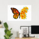 Papillon monarque orange détaillé avec une aile décorée de pavot de Californie jaune et vibrant sur fond blanc.