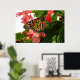 Un accent décoratif avec un beau papillon sur des fleurs rouges - idéal pour la maison, le bureau ou la chambre d'enfant!